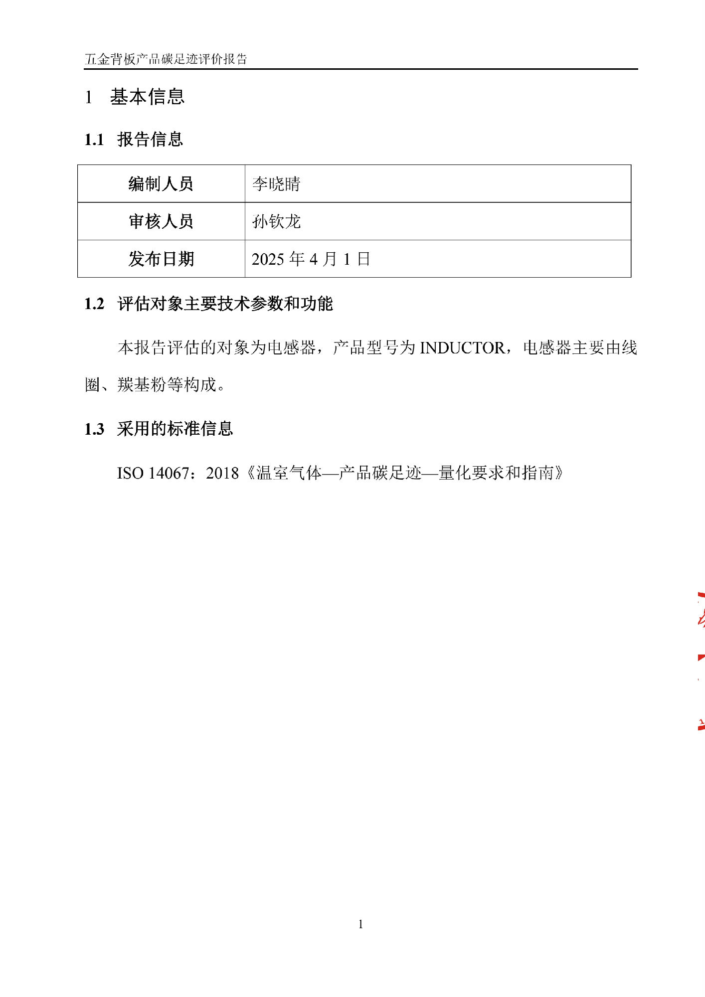固电-产品碳足迹评价报告-电感器